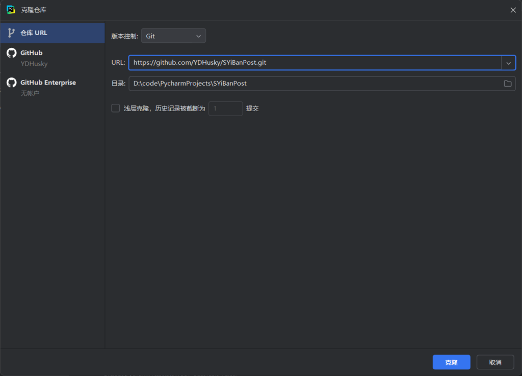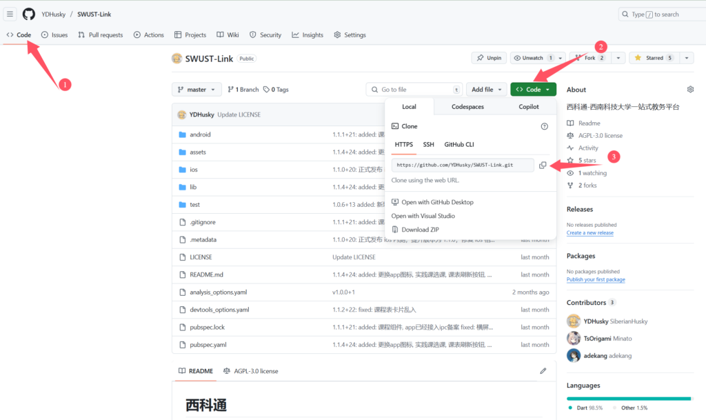 git clone https://github.com/YDHusky/SWUST-Link.gitBash单一拉取(指定分支)