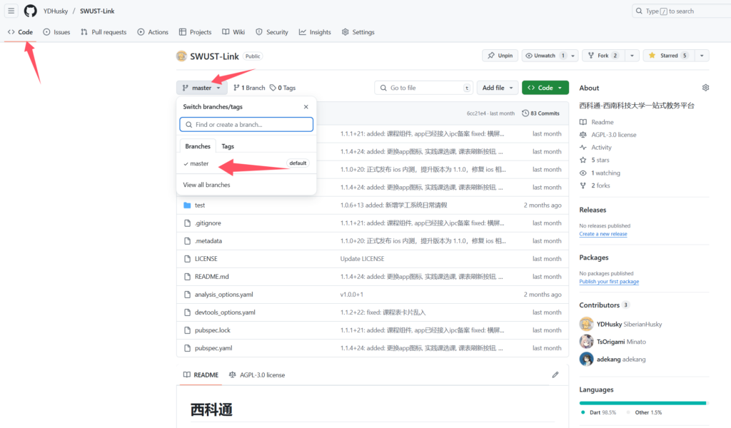 git clone -b master https://github.com/YDHusky/SWUST-Link.gitBash分支指的是