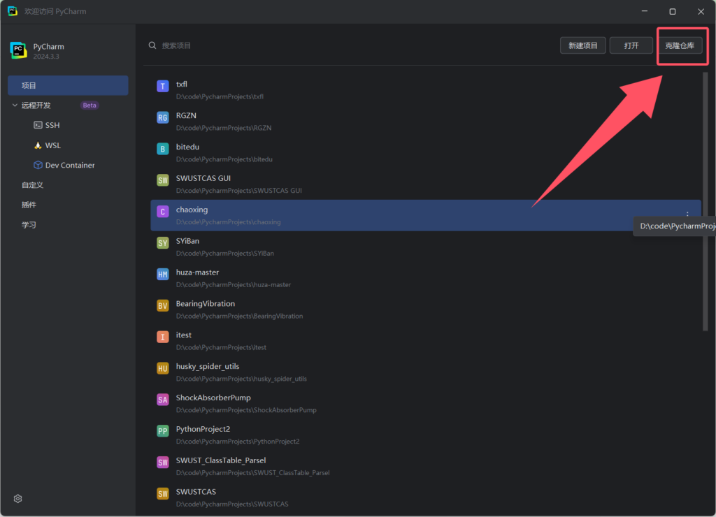 以一个github仓库举例,获取仓库链接操作如下(其他平台类似)